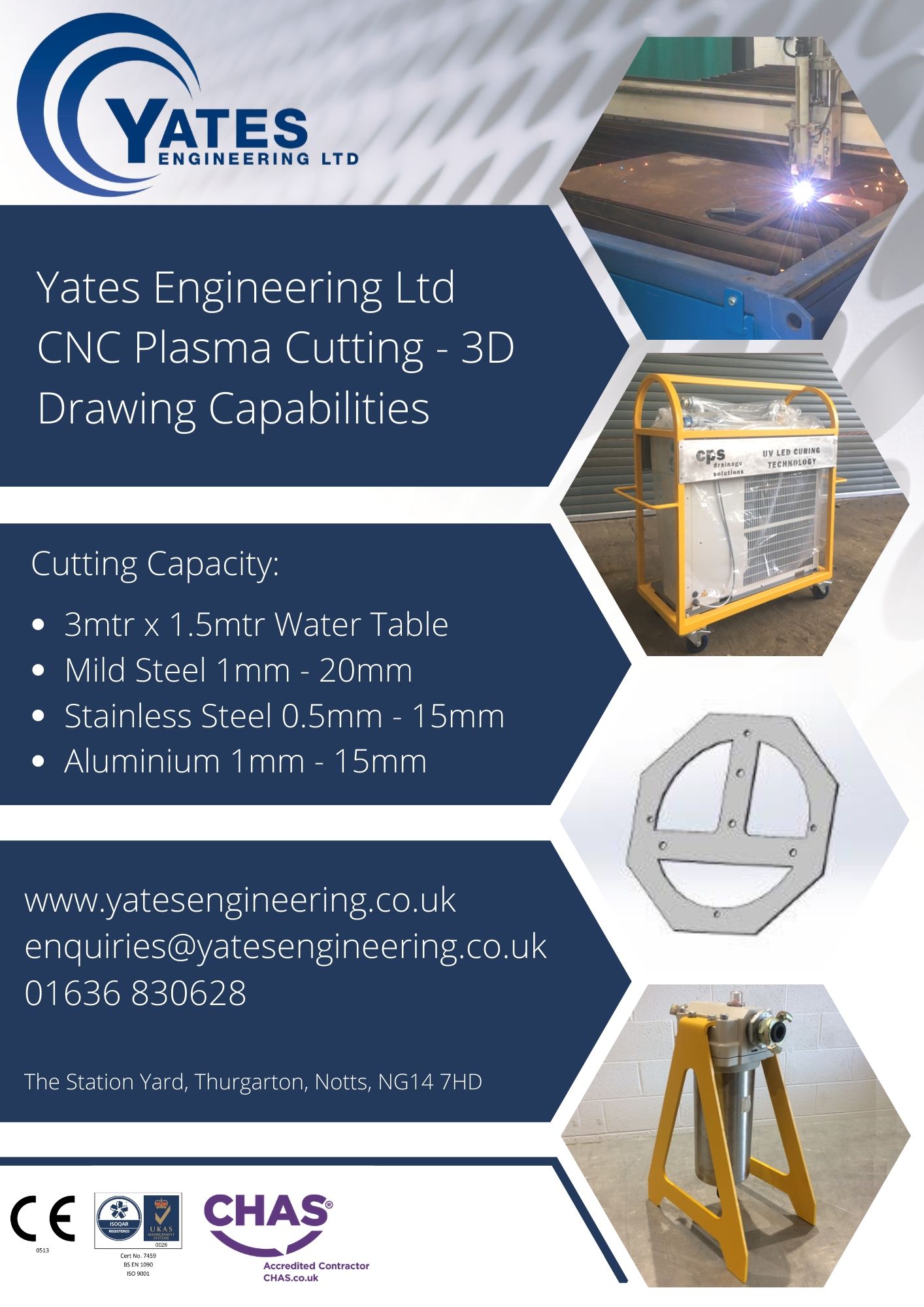 Yates Engineering are now able to offer CNC Plasma cutting alongside 3D Drawings.