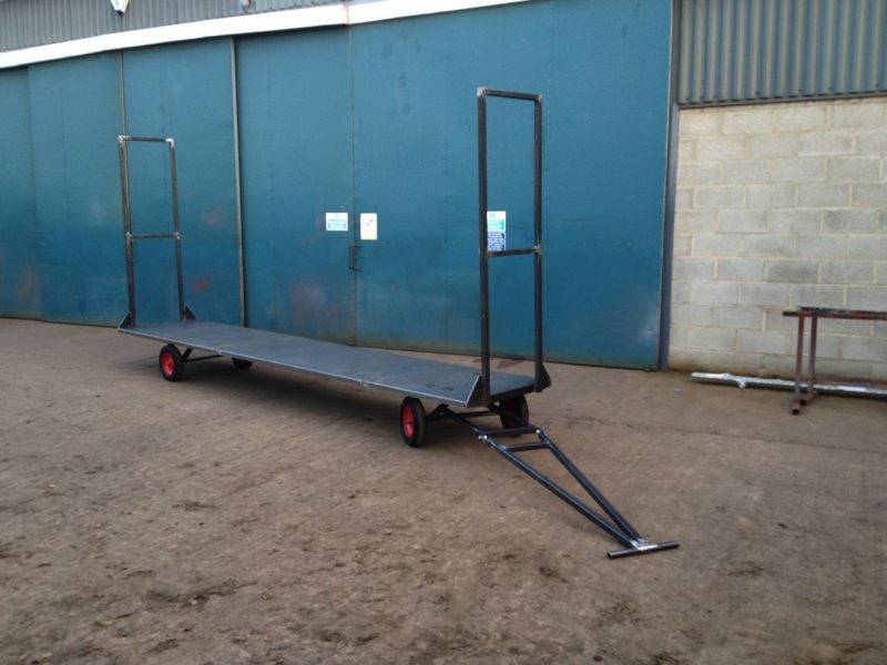 Our solution to this brief was the design and fabrication of this 5 metre trolley with turntable steering. As weight was an issue we designed it to use a strong but lightweight ladder frame construction.